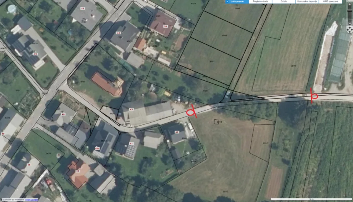 Na podlagi 34. člena Odloka o občinskih cestah (Uradni list RS, št. 43/2012, 128/2022), ki določa, da dovoljenje za delno in popolno zaporo cest ni potrebno zaradi rednega vzdrževanja občinskih cest ter zaradi opravljanja obnovitvenih investicijskih del na občinskih cestah, za katera je izvedba zapore ceste urejena v pogodbi o oddaji teh del, vas obveščamo, da bo na parceli številka 1194/3 k. o. 2180 Žirovnica, kot je prikazano na spodnji sliki, od 22. julija 2025 do predvidoma 29. julija 2025, potekala rekonstrukcija in preplastitev makadamske površine kategorizirane občinske javne poti z oznako JP 650 025 (Breg 43).