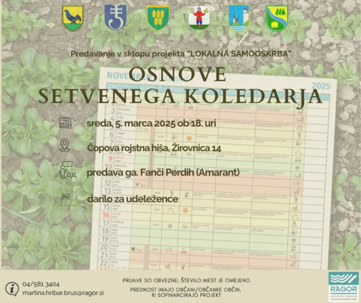Vabilo na predavanje »OSNOVE SETVENEGA KOLEDARJA«