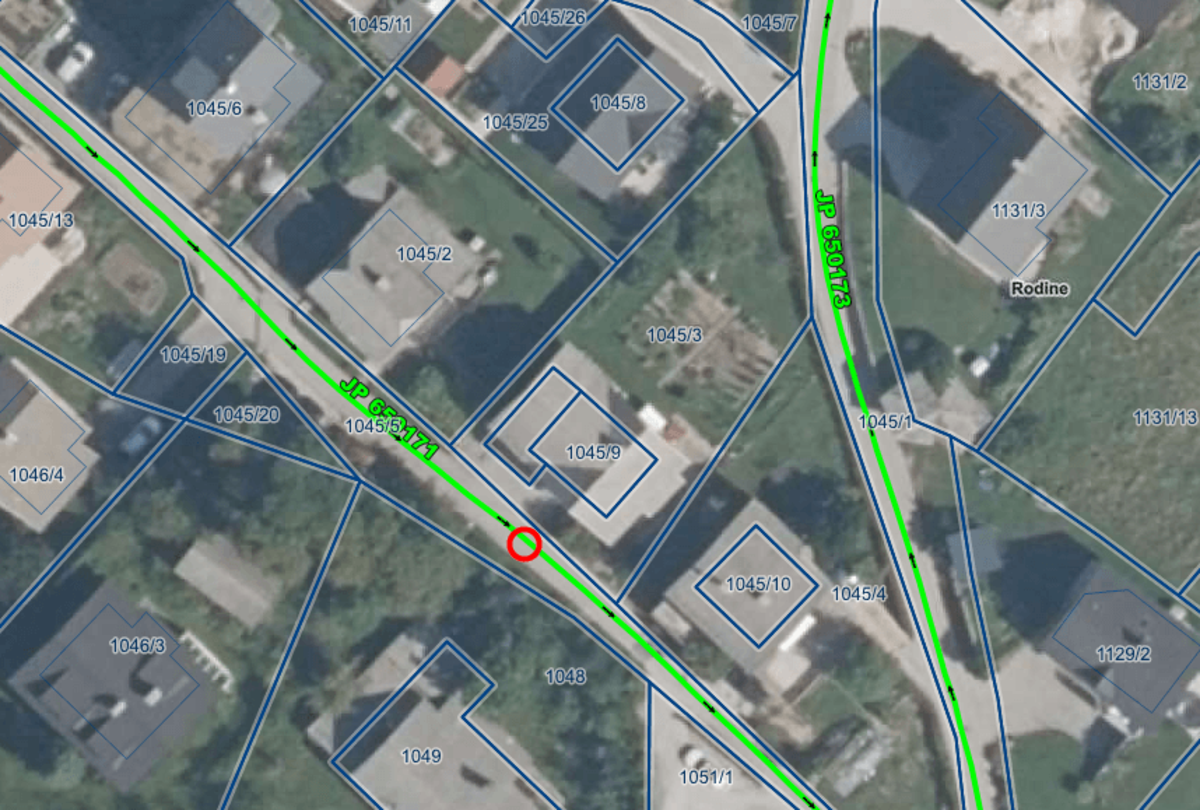 Na podlagi 34. člena Odloka o občinskih cestah (Uradni list RS, št. 43/2012, 128/2022), ki določa, da dovoljenje za delno in popolno zaporo cest ni potrebno zaradi rednega vzdrževanja občinskih cest ter zaradi opravljanja tistih obnovitvenih del na občinskih cestah, za katera je izvedba zapore ceste urejena v pogodbi o oddaji teh del, obveščamo, da bodo na kategorizirani občinski cesti z oznako JP 650171, na zemljišču s parc. št. 1045/5, k.o. Doslovče, kot to prikazuje spodnja slika, v ponedeljek, 8.9.2025, med 8. in 14. uro, potekala dela in sicer namestitev dodatne luči javne razsvetljave ob občinski cesti.
