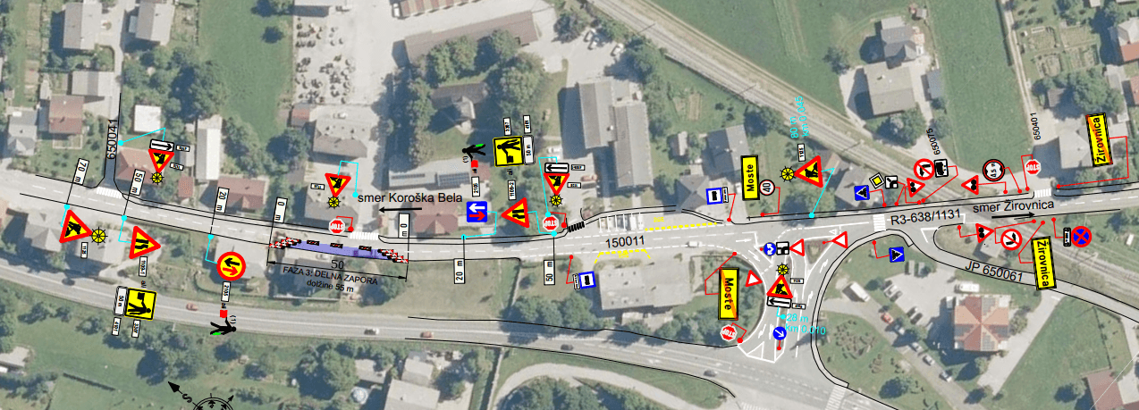 Občinska kategorizirana cesta z oznako LC 150011 (R2 Ajdna – R3 Moste) na zemljišču s parc. št. 1198/3, k.o. Žirovnica, v območju od zemljišča s parc. št. 24/4 (avtobusno postajališče) do zemljišča s parc. št. 727/32, k.o. Žirovnica, bo zaradi izgradnje elektro kabelske kanalizacije (priključek za nov Outdoor hotel) fazno delno zaprta v obdobju med 17. 9. in 27. 10. 2025, med 7. in 17. uro.